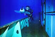 It was sunk to a depth of 27m, the command tower is only 2 meters from the surface. It offers diving to different depths, depending on the experience and the level of the visitors.